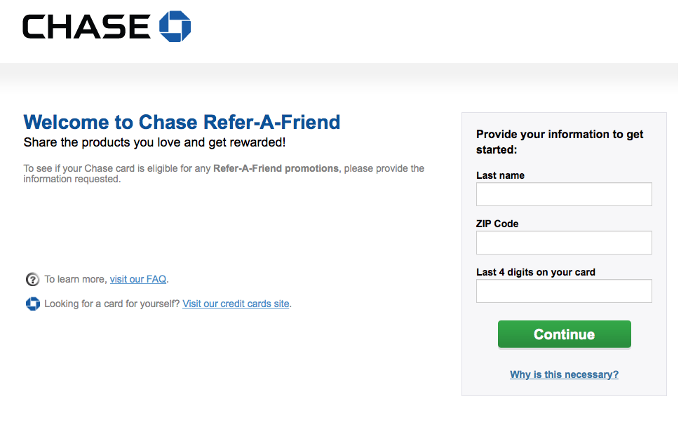 Chase Credit Card Referral - Share Your Chase Card Referral Links to Earn Extra - One Cent At A Time. A credit card referral bonus is an incentive that credit card issuers offer to cardholders for inviting their friends to apply for a card. Chase offers a referral bonus across many of its cards. Be sure to check often because referral promotions change from time to time. If you are a current chase credit card member with any of the following credit cards, you can qualify to earn extra bonus rewards from chase for. Chase's broad suite of credit cards make it a popular choice among cardholders.